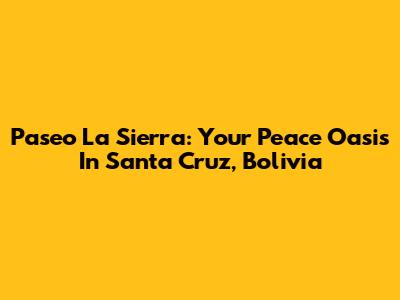Paseo La Sierra: Your Peace Oasis In Santa Cruz, Bolivia