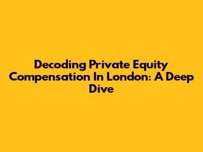 Decoding Private Equity Compensation In London: A Deep Dive