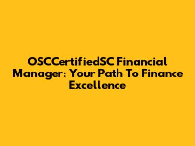 OSCCertifiedSC Financial Manager: Your Path To Finance Excellence