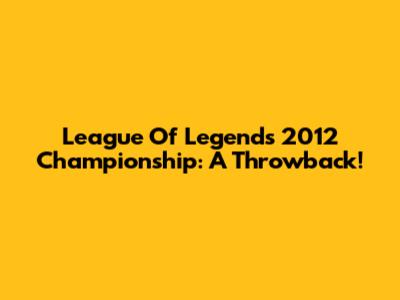 League Of Legends 2012 Championship: A Throwback!