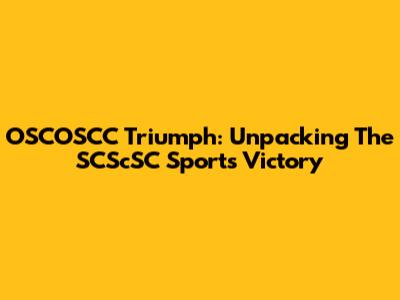 OSCOSCC Triumph: Unpacking The SCScSC Sports Victory