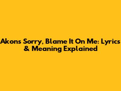 Akon's "Sorry, Blame It On Me": Lyrics & Meaning Explained
