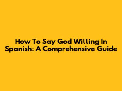 How To Say 'God Willing' In Spanish: A Comprehensive Guide