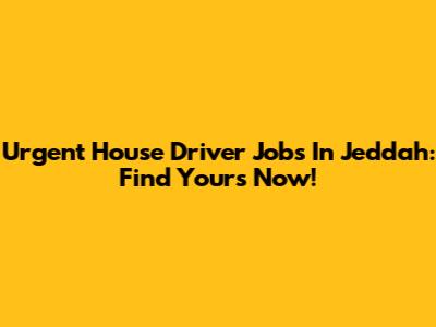 Urgent House Driver Jobs In Jeddah: Find Yours Now!
