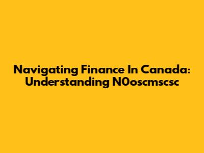 Navigating Finance In Canada: Understanding N0oscmscsc