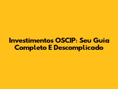 Investimentos OSCIP: Seu Guia Completo E Descomplicado