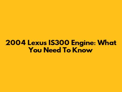 2004 Lexus IS300 Engine: What You Need To Know