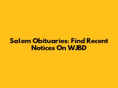 Salem Obituaries: Find Recent Notices On WJBD