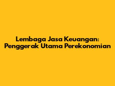 Lembaga Jasa Keuangan: Penggerak Utama Perekonomian