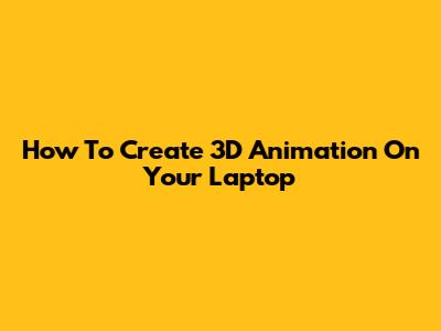 How To Create 3D Animation On Your Laptop