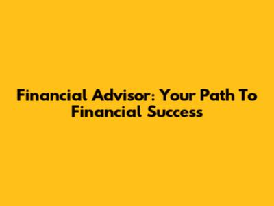 Financial Advisor: Your Path To Financial Success