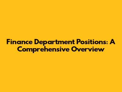 Finance Department Positions: A Comprehensive Overview