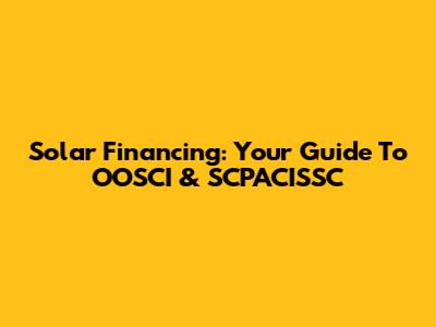 Solar Financing: Your Guide To OOSCI & SCPACISSC