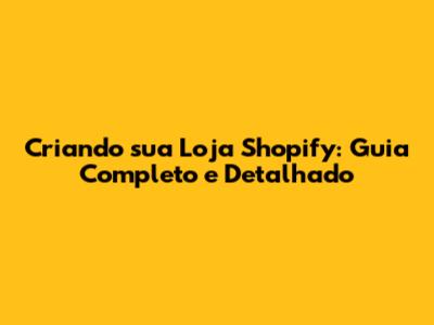 Configurando a Loja no Shopify: Passo a Passo
