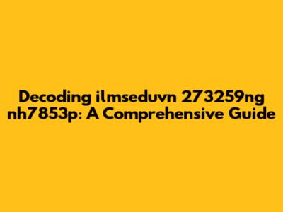 Unveiling the Mystery of ilmseduvn 273259ng nh7853p