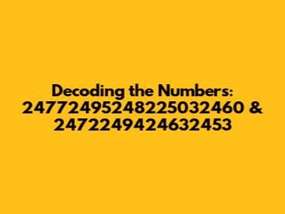 Ever stumbled upon a seemingly random string of numbers and wondered what it could possibly mean? Today, we're diving deep into the enigmatic world of 24772495248225032460 and 2472249424632453. These aren't just any numbers; they represent something, and our mission is to decode what that something might be. Whether you're a data enthusiast, a curious cat, or just someone looking for a mental workout, you're in the right place. Let's break down these numerical mysteries and see if we can unravel their secrets. We will explore possible origins, potential uses, and the various methods one might employ to decipher such lengthy sequences. So, buckle up, grab your thinking caps, and prepare for a numerical adventure! Are they product codes? Serial numbers? Encrypted messages? Let’s find out together, guys!