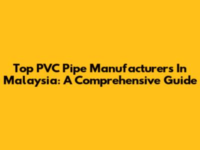 Top PVC Pipe Manufacturers In Malaysia: A Comprehensive Guide