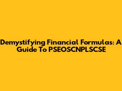 Demystifying Financial Formulas: A Guide To PSEOSCNPLSCSE