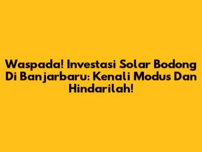 Waspada! Investasi Solar Bodong Di Banjarbaru: Kenali Modus Dan Hindarilah!