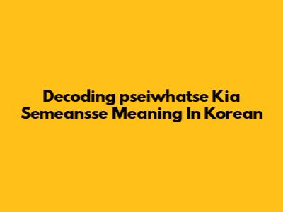 Decoding "pseiwhatse Kia Semeansse" Meaning In Korean