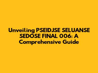 Unveiling PSEIDJSE SELUANSE SEDOSE FINAL 006: A Comprehensive Guide