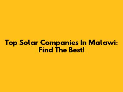 Top Solar Companies In Malawi: Find The Best!