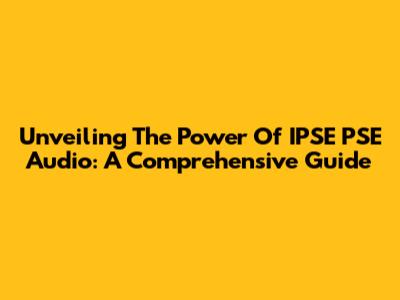 Unveiling The Power Of IPSE PSE Audio: A Comprehensive Guide
