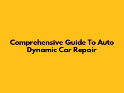 Comprehensive Guide To Auto Dynamic Car Repair