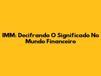 IMM: Decifrando O Significado No Mundo Financeiro
