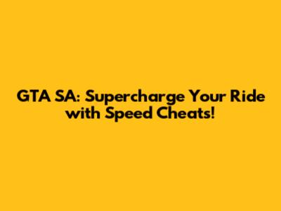 GTA SA: Supercharge Your Ride With Speed Cheats!