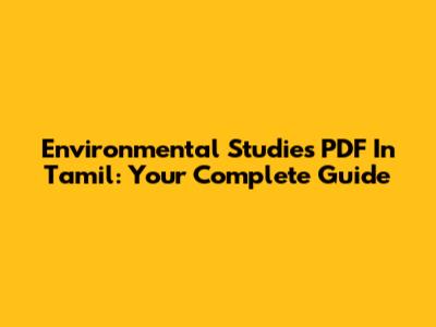 Environmental Studies PDF In Tamil: Your Complete Guide