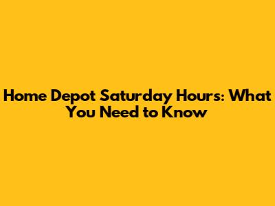 Understanding Home Depot's Saturday Schedule