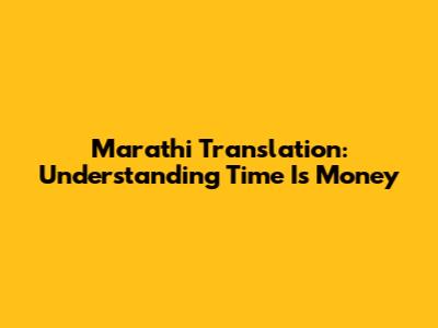 Marathi Translation: Understanding 'Time Is Money'