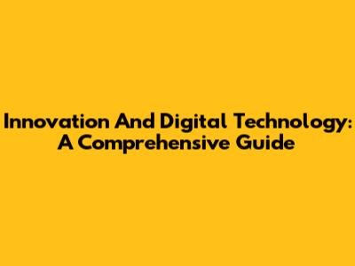 Innovation And Digital Technology: A Comprehensive Guide
