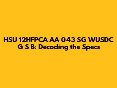 Breaking Down the Code: HSU 12HFPCA AA 043 SG WUSDC G S B
