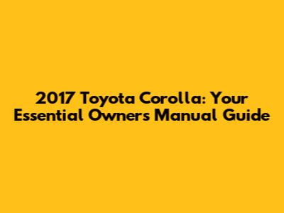 2017 Toyota Corolla: Your Essential Owners Manual Guide
