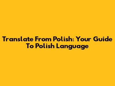 Translate From Polish: Your Guide To Polish Language