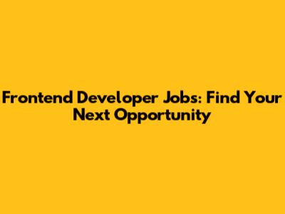 Frontend Developer Jobs: Find Your Next Opportunity