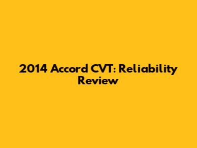 2014 Accord CVT: Reliability Review