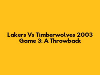 Lakers Vs Timberwolves 2003 Game 3: A Throwback