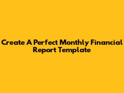 Create A Perfect Monthly Financial Report Template