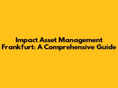 Hey everyone! Let's dive into something super important: Impact Asset Management in Frankfurt. This is a big deal in the financial world, so understanding it is key. This article will break down everything you need to know, making it easy to grasp. We'll cover what impact asset management actually is, why Frankfurt is such a central hub for it, and what the future might hold. Get ready for some insights that can really level up your understanding of finance. Let's get started, shall we?