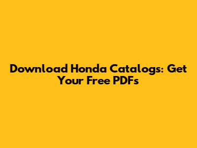 Download Honda Catalogs: Get Your Free PDFs