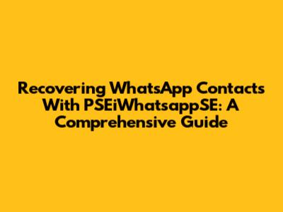Recovering WhatsApp Contacts With PSEiWhatsappSE: A Comprehensive Guide