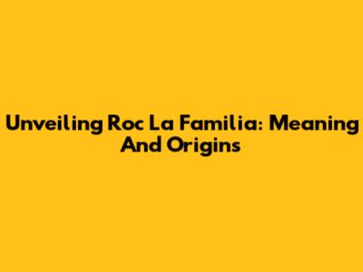 Unveiling 'Roc La Familia': Meaning And Origins