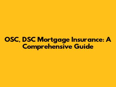 OSC, DSC Mortgage Insurance: A Comprehensive Guide