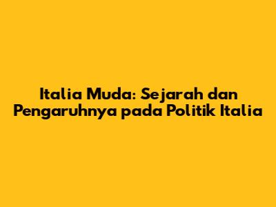 Italia Muda adalah gerakan politik yang penting dalam sejarah Italia. Didirikan oleh Giuseppe Mazzini, gerakan ini bertujuan untuk menyatukan Italia menjadi sebuah republik yang merdeka dan demokratis. Meskipun tidak berhasil mencapai tujuannya secara langsung, Italia Muda berhasil membangkitkan semangat nasionalisme dan patriotisme di kalangan rakyat Italia dan memberikan kontribusi penting dalam mempersiapkan jalan bagi penyatuan Italia. Warisan Italia Muda masih terasa hingga saat ini, dan gerakan ini terus menjadi inspirasi bagi para aktivis dan politisi di Italia dan di seluruh dunia.