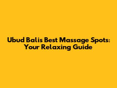 Ubud Bali's Best Massage Spots: Your Relaxing Guide