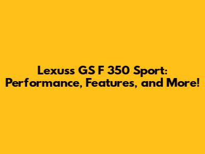 All these features combine to create a car that looks and feels special, both inside and out. The attention to detail is evident throughout the vehicle, from the stitching on the seats to the design of the dashboard. The GS F 350 Sport is designed to be a car that you'll enjoy driving and spending time in. It is a true luxury sports sedan.