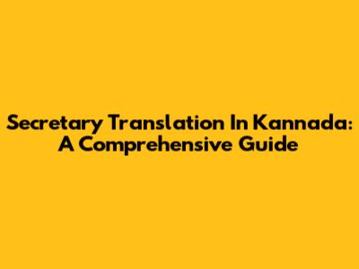 Secretary Translation In Kannada: A Comprehensive Guide